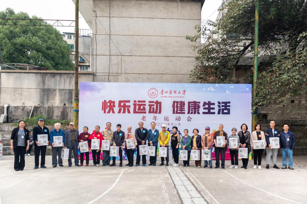 运动会上,刘文,离退休工作处党总支书记、处长张雪晴,姚思勤为获胜老同志颁发奖品。