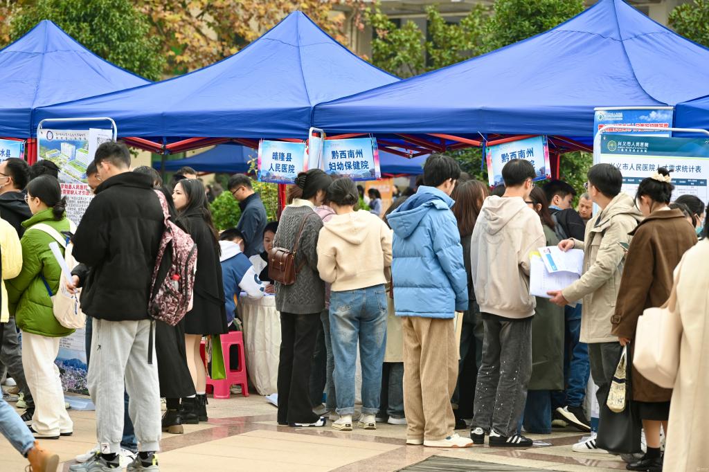 11月24日,beat3652024届毕业生冬季大型校园招聘会在北校区广场成功举办。本次招聘会由beat365正版唯一官网必一与中共贵阳市委组织部共同主办,主题是“职引未来 筑梦青春”,旨在为毕业生提供丰富的就业机会,并促进校地、校企合作。校党委副书记汤磊到现场指导工作并与用人单位和毕业生进行亲切交流。相关职能部门、各学院相关负责人,2023届、2024届毕业生参加。
