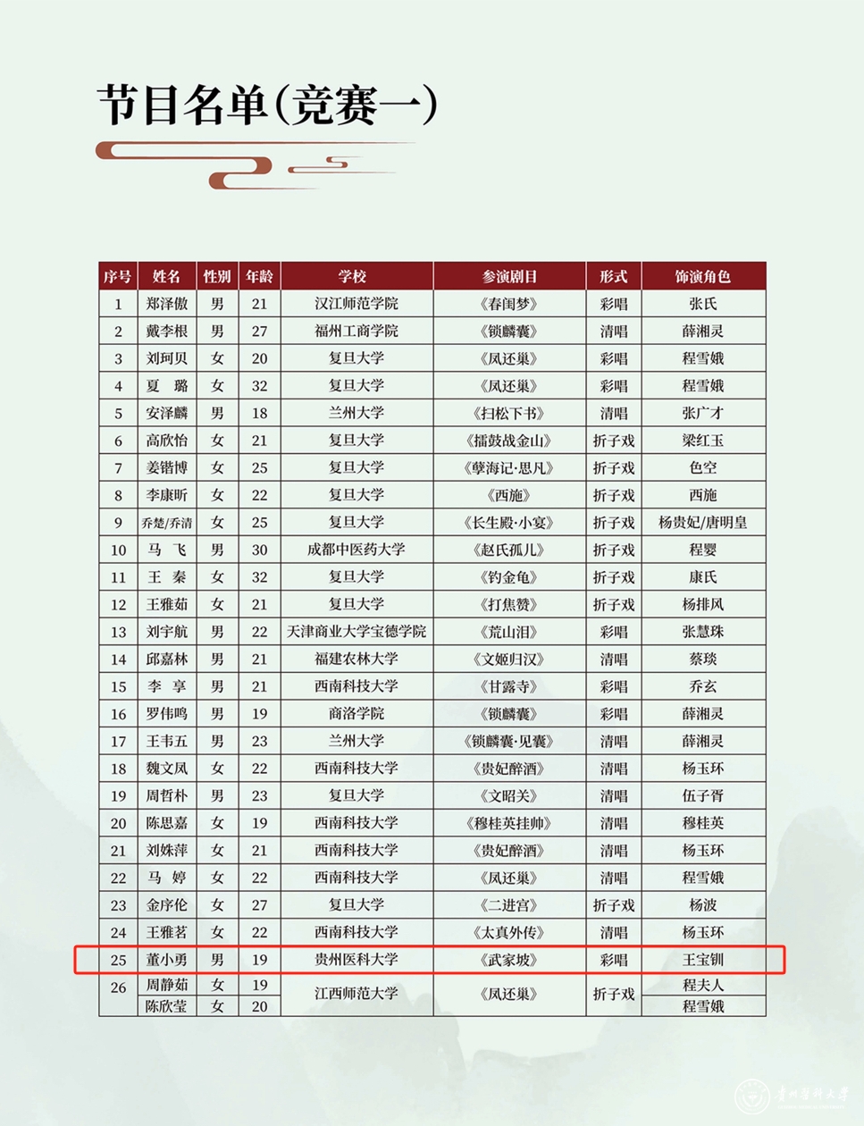 12月16日至23日,beat365基础医学院临床医学专业2022级4班董小勇同学表演的京剧《武家坡》选段参加中国戏曲表演学会高校京剧分会举办的第十五届全国高校京剧演唱会线上展演,荣获全国三等奖。作为贵州省唯一获奖院校,这次获奖是beat365在艺术领域的一次突破,是对学校美育教育的肯定。