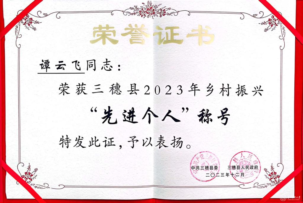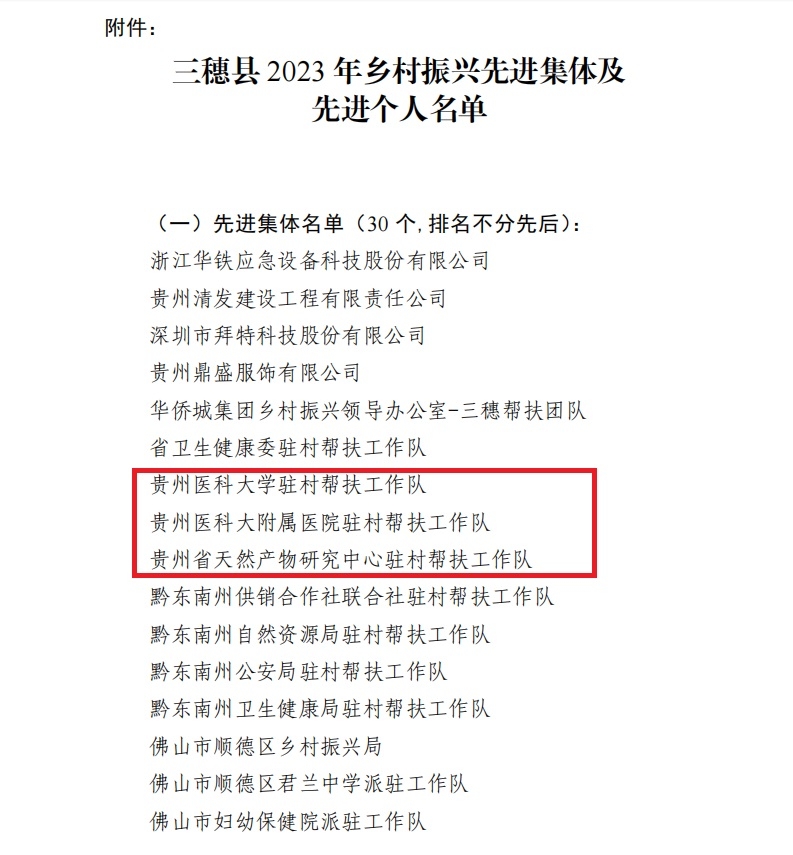 近日,三穗县委县政府表彰了在巩固拓展脱贫攻坚成果同乡村振兴有效衔接各项工作中爱岗敬业、锐意创新、勇于担当、无私奉献的先进集体和先进个人。“beat365正版唯一官网必一驻村帮扶工作队、贵州医科大附属医院驻村帮扶工作队、贵州省天然产物研究中心驻村帮扶工作队”获先进集体称号,贵州省天然产物研究中心谭云飞荣获先进个人称号。