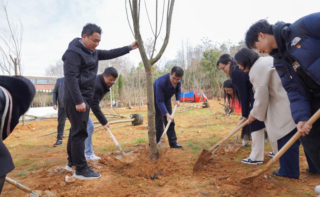 罗鹏指出,建设绿色校园是推进生态文明建设和倡导绿色发展理念的重要举措,我们要牢固树立和践行绿水青山就是金山银山的理念。学校搬迁入驻云漫湖新校区,树木植于土,育人植于心,植树寓意着学校“十年树木,百年树人”的使命担当,希望学校全体教职员工要做好为党育人、为国育才的“园丁”,培养更多优秀人才,全力推动学校高质量发展;要把义务植树作为一种文化传承,当作一份责任担当,鼓足干劲、齐心协力,以“绿”化人、以美润心,努力建设好我们共同的校园。