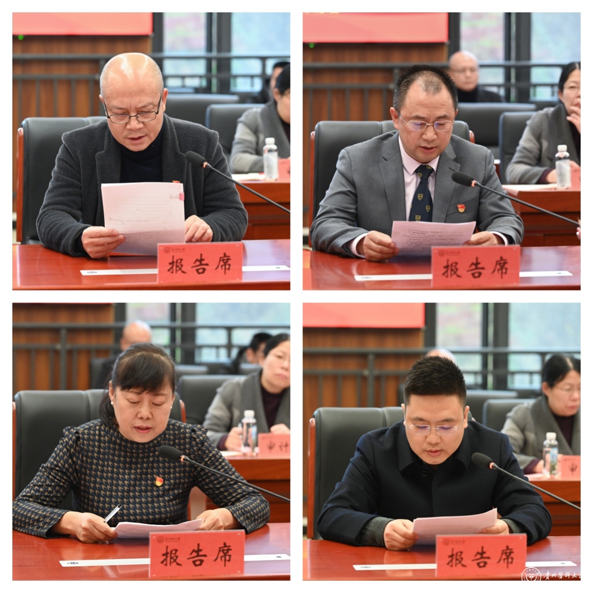 校党委副书记、校长罗鹏,校党委副书记刘文,校党委副书记汤磊结合日常工作情况,对各基层党委(党总支)书记述职进行逐一点评。与会全体人员开展现场评议。