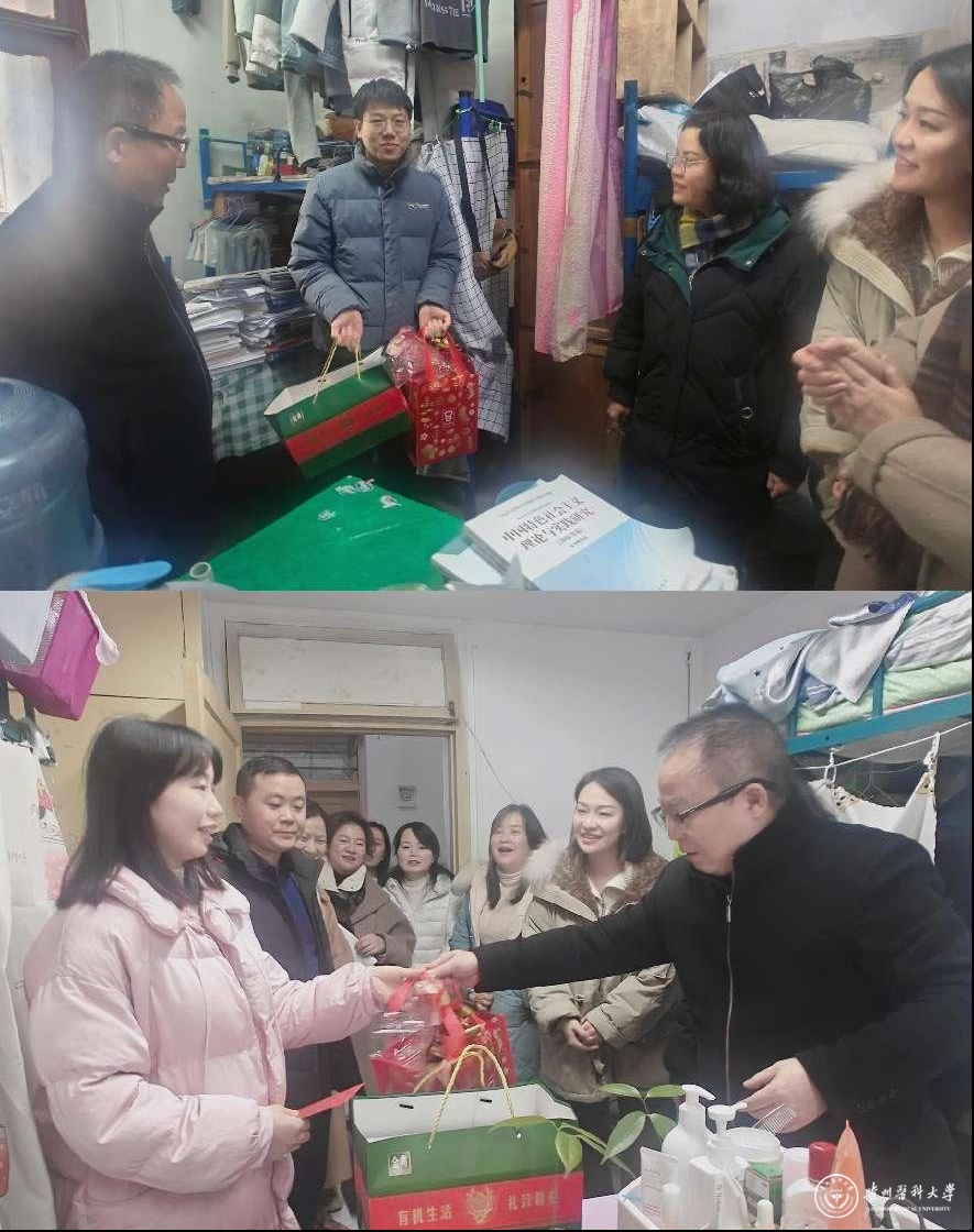 1月30日,副校长曾柱率队走访北京路校区研究生寝室,看望慰问寒假及春节期间留校研究生,开展学生宿舍消防安全等关键环节监督检查。党委研究生工作部、研究生院、临床医学院、口腔医学院等相关负责人参加走访慰问。