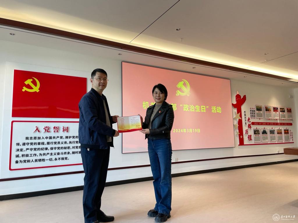 3月19日,机关党委党支部在云漫湖校区开展“政治生日”主题党日活动,校党委副书记刘文参加活动,并勉励大家牢记党员身份,持续淬炼党性,永葆先进本色;活动由机关党委党支部书记陆法钢主持。