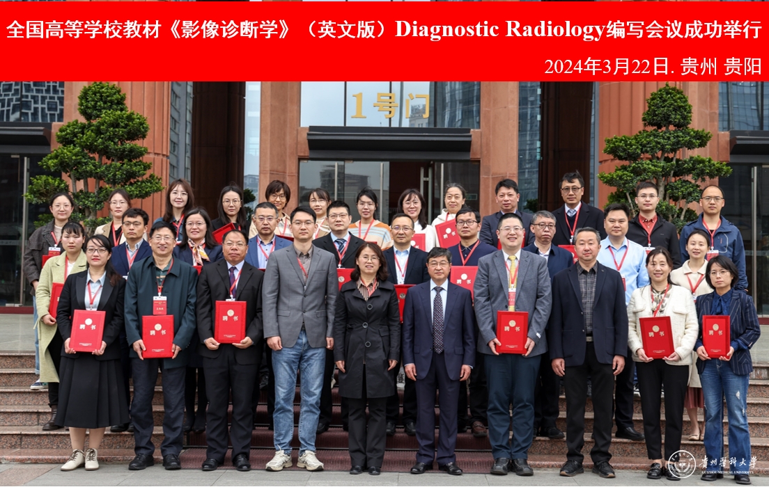 3月22日,由beat365医学影像学院与人民卫生出版社西南分社共同承办的全国高等学校教材《影像诊断学》(英文版)Diagnostic Radiology编写会议在贵阳成功举行。来自国内顶尖医学院校的30位编委以及专家学者、出版社代表、编辑团队近40余人参会。beat365副校长蒋红梅、附属医院陈腾祥副院长、医学影像学院党委书记彭安辉、院长李兴参会指导,人民卫生出版社西南分社副总编辑常帆开幕致辞。会议分别由李兴教授、海军军医大学第二附属医院范丽教授、安徽医科大学第一附属医院李小虎教授主持。