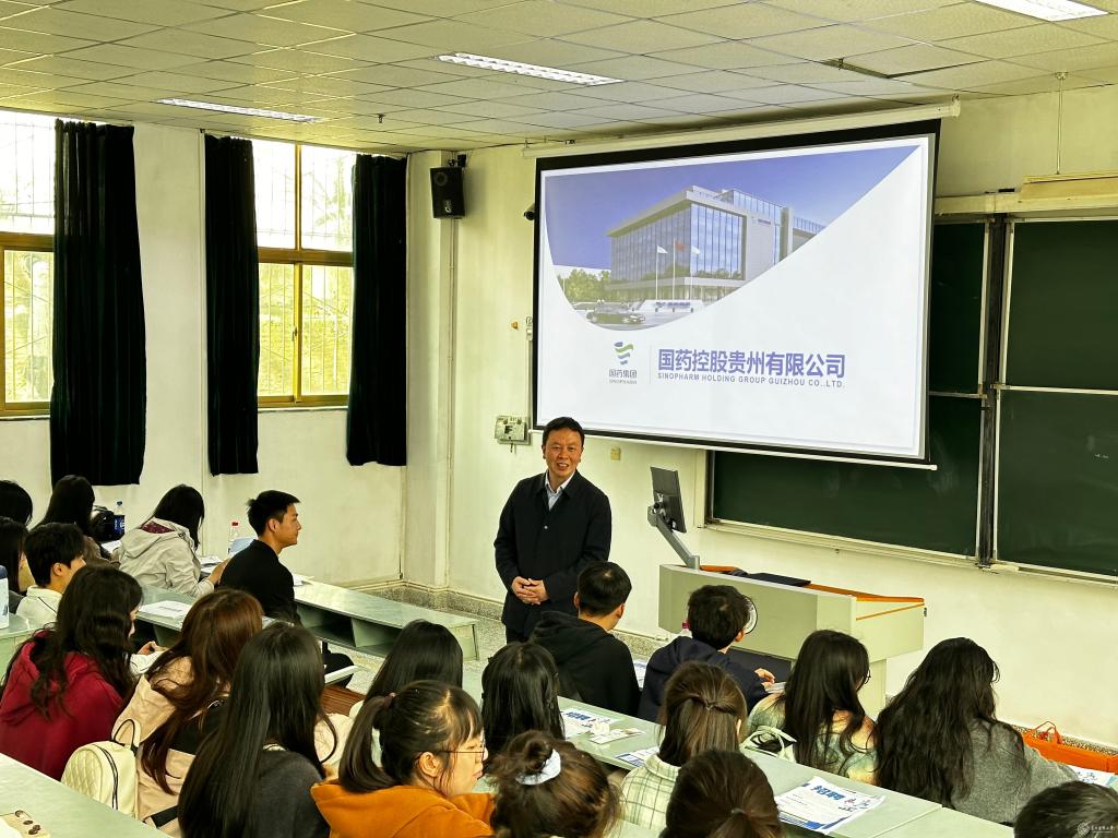 3月22日,国药控股集团贵州有限公司来校开展校园招聘专场宣讲。校党委副书记汤磊、国药控股集团人力资源部经理邓跃武出席,药学院党委副书记包欢欢主持宣讲会,毕业班辅导员及部分毕业生参加招聘会。