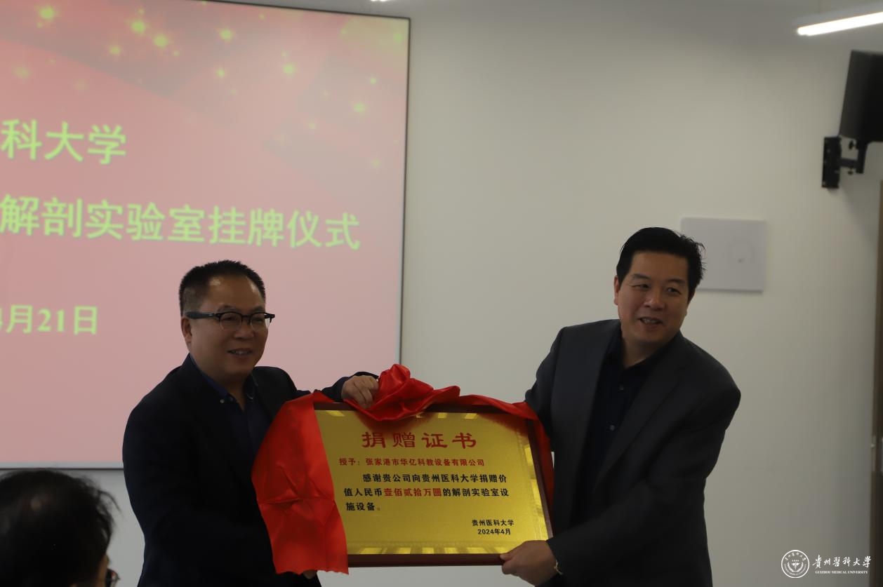 曾柱向beat365正版唯一官网必一标准化数智净化临床解剖实验室捐赠企业颁发牌匾。曾柱指出,人体解剖学学科要以此次挂牌为契机,进一步加强实验室建设,不断丰富教学方法与手段,持续推进解剖教学改革,提高解剖教学质量,培养高质量医学人才,为学校和学院发展做出积极贡献。