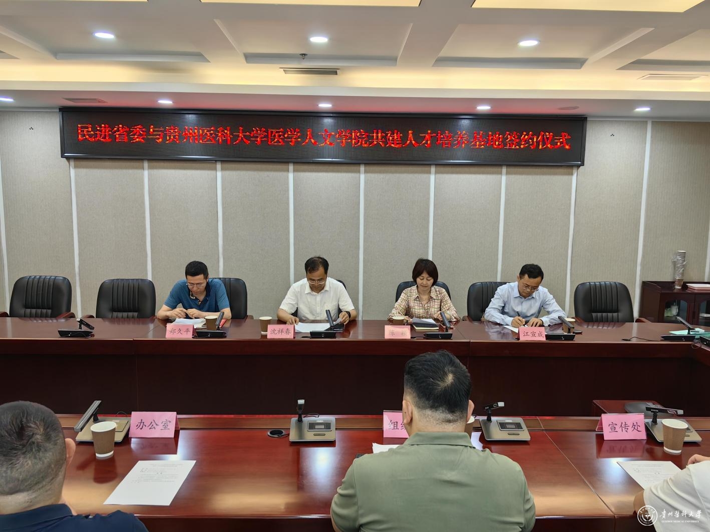 7月5日,民进贵州省委与医学人文学院共建人才培养基地签约仪式在省政协大楼1001会议室举行。副校长、民进贵州省委副主委、贵州省科协副主席沈祥春,民进贵州省委秘书长郑久平,校党委委员、党委宣传部(精神文明办)部长(主任)、党委统战部部长陈颖,医学人文学院党委书记江宣成及民进省委机关各处室负责同志参加签约仪式。签约仪式由民进贵州省委秘书长郑久平主持。