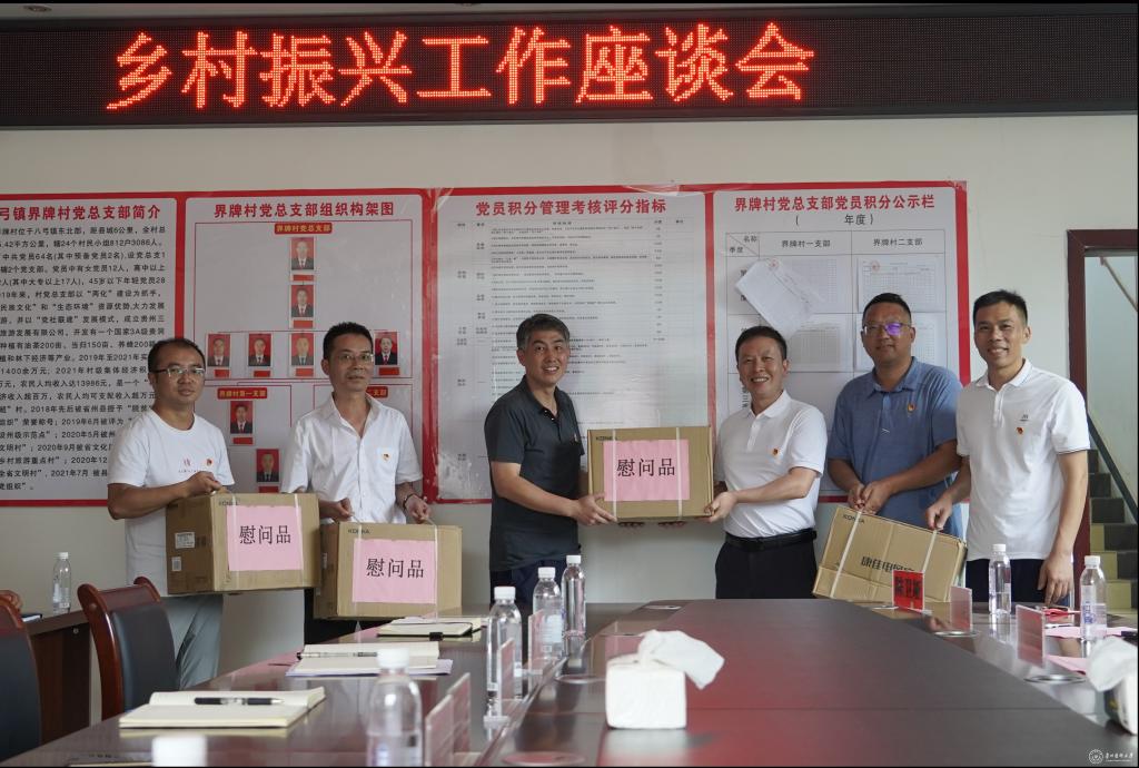 7月17日,校党委副书记汤磊到三穗县八弓镇界牌村看望慰问beat365驻村工作队并举行座谈会。座谈会在界牌村会议室举行,校党委副书记汤磊,共青团三穗县委书记杨任,八弓镇党委委员袁良勇出席,校团委、基础医学院等部门负责人,驻村工作队全体成员、界牌村“两委”以及校团委相关老师参加,会议由驻村工作队队长张亮主持。