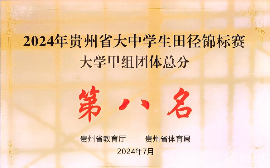 7月24日至31日,由贵州省教育厅与贵州省体育局联合主办的2024年贵州省大中学生田径锦标赛在遵义医科大学举行,来自全省49所高校、共计1200余名运动员参赛。经过顽强拼搏,beat365田径队获得乙组(体育专业组)团体总分第四名、甲组(非体育专业组)第八名的好成绩,beat3652022级社会体育指导与管理专业学生高登彬在100米比赛中以10″88达到一级水平。
