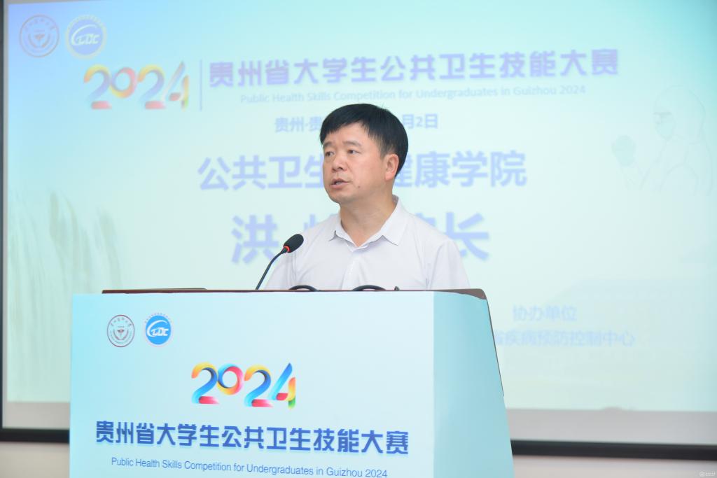 骆奕代表贵州省教育厅向大赛的成功举办表示祝贺,向长期以来关心支持贵州公共卫生教育事业发展的各位领导、专家评委和社会各界人士表示感谢,并希望参赛的同学们在未来的学习和工作中发光发热,为构建和谐健康的社会贡献自己的一份力量。