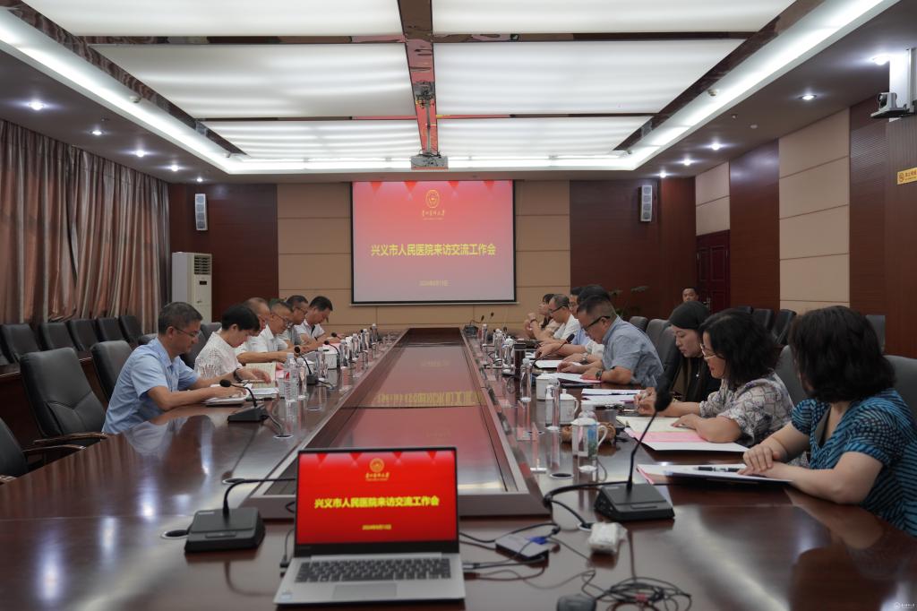 8月13日,兴义市人民医院党委书记、院长王忠安一行到校考察交流。校党委副书记、校长罗鹏出席座谈会,党委委员、副校长曾柱主持,相关职能部门负责人参加。