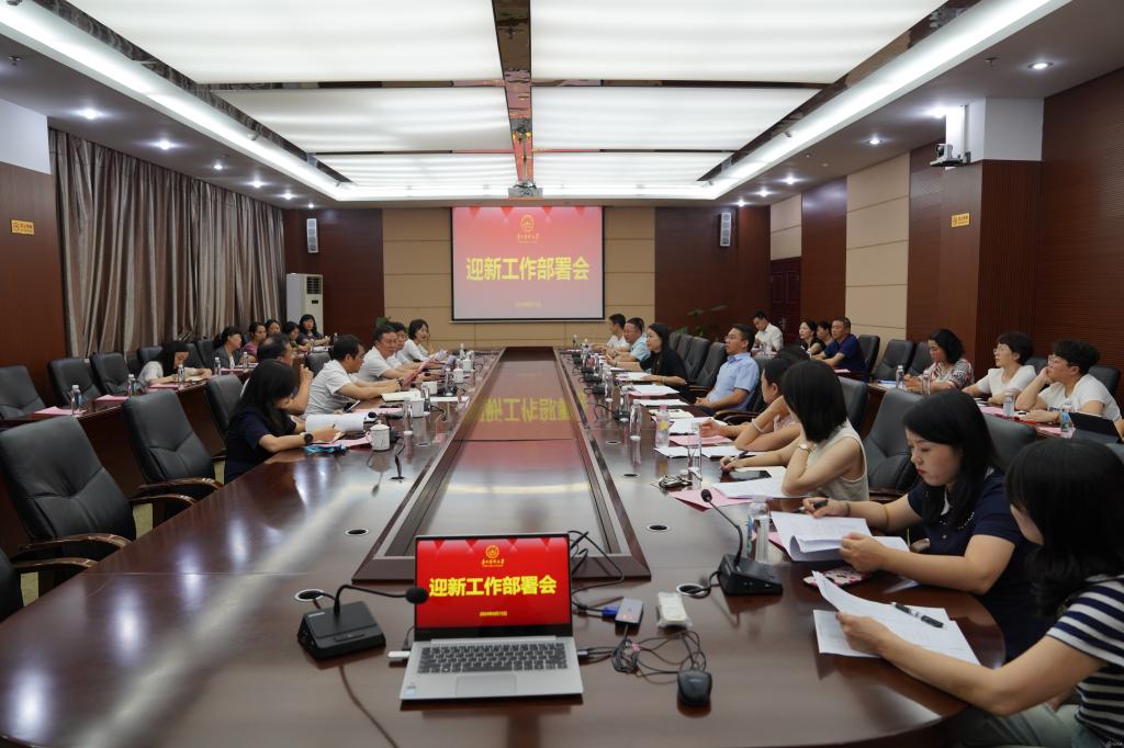 8月15日,学校迎新工作部署会在北京路校区行政楼6楼连廊会议室召开。党委副书记、校长罗鹏,党委副书记汤磊,副校长沈祥春,党委委员、副校长洪峰和齐晓岚出席会议,学校相关职能部门、各学院主要负责人参加会议。会议由汤磊主持。