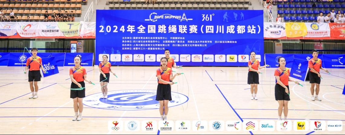 8月14日至17日,由国家体育总局社会体育指导中心、中国毽球协会主办,全国跳绳推广委员会、西南石油大学体育学院、四川省运动舞蹈协会承办,上海大健石体育文化传播有限公司、四川强心体育文化传播有限公司协办的2024年全国跳绳联赛(四川成都站)在四川成都西南石油大学体育馆成功举行。来自全国的138支队伍1500余人参加此次比赛。