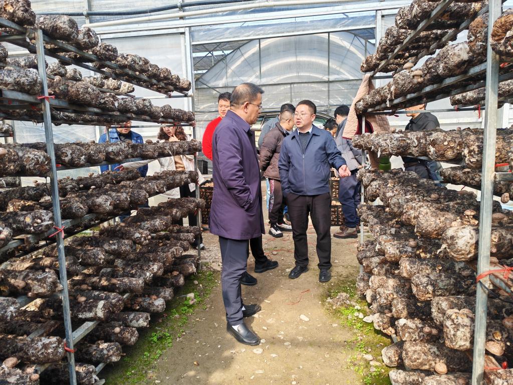 在瓦寨镇现代农业产业基地,调研团队实地考察了香菇种植基地与蛋鸭养殖基地的发展情况,重点关注产业发展中的技术难点与需求。禹文峰副结合学校的学科优势与资源特色,与基地负责人、镇村干部就校地产业合作展开深入探讨。双方围绕农产品质量提升、技术指导与培训等方面交换意见。