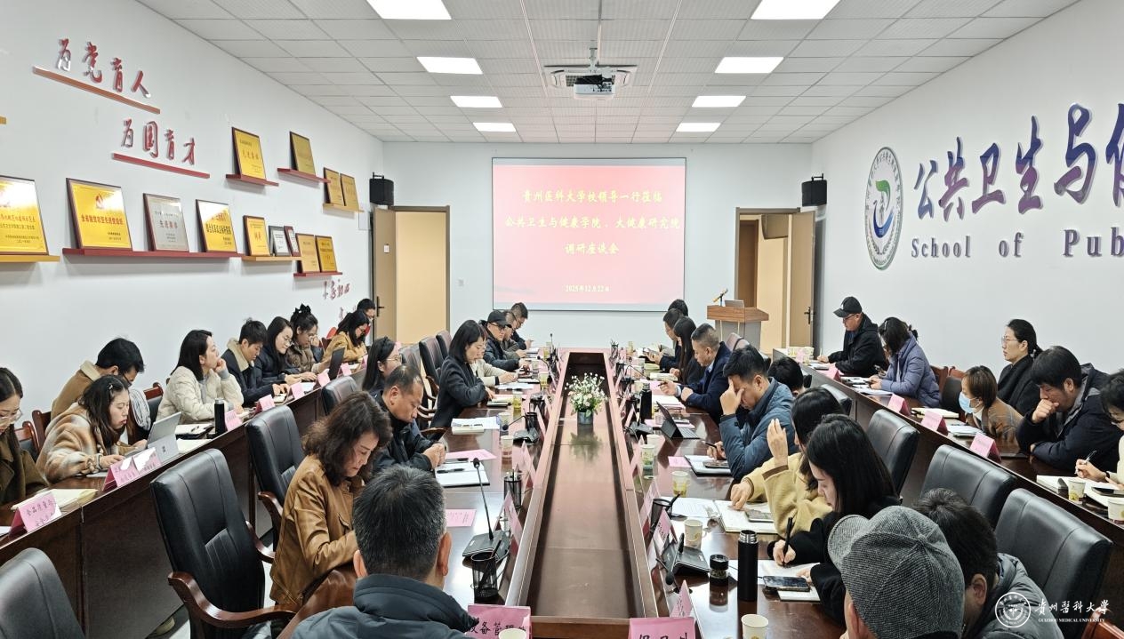 会前,俞松一行实地走访了公共卫生国家级教学示范中心、环境污染与疾病监控教育部重点实验室、毒性检测中心、贵州省生态食品创制工程研究中心、大健康研究院,仔细查看各平台设施配置与运行管理情况,深入了解教学科研工作现状,并与一线教师、实验室工作人员亲切交流,认真听取他们在实际工作中遇到的困难与诉求。