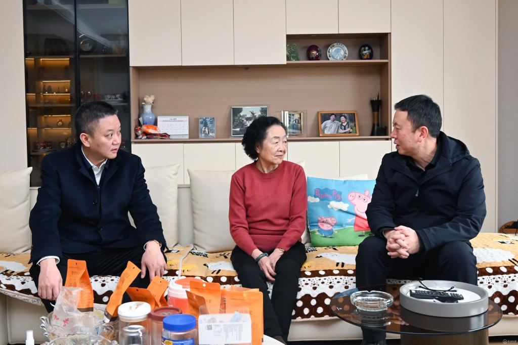 校党委书记汤磊,党委副书记、校长俞松等校领导带队走访,传递学校的关怀与温暖。校党政办、组织部、宣传部等部门负责人及离退休工作处相关负责人陪同。