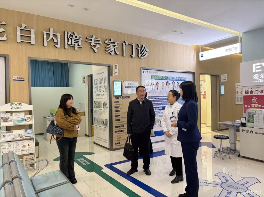 禹文峰指出,此次访企拓岗是推动校企合作、服务地方经济社会发展的重要实践。他强调,当前国家高度重视科技创新,民营企业创新活力强,希望双方以此次合作为契机探索深度合作:一是借助爱尔眼科全球化的技术平台和管理经验,将前沿技术、AI人工智能等交叉学科元素融入眼视光医学人才培养体系,优化课程设置,提升学生岗位胜任力,培养适应新时代需求的高素质眼视光人才;二是共建实习实训基地,通过实习实践选拔优秀毕业生,实现人才供需精准对接,为学生提供更多优质就业岗位;三是建立长效合作机制,探索“双师型”导师互聘、科研项目合作、学术交流等模式,推动教育链、人才链与产业链深度融合,实现资源共享、合作共赢。