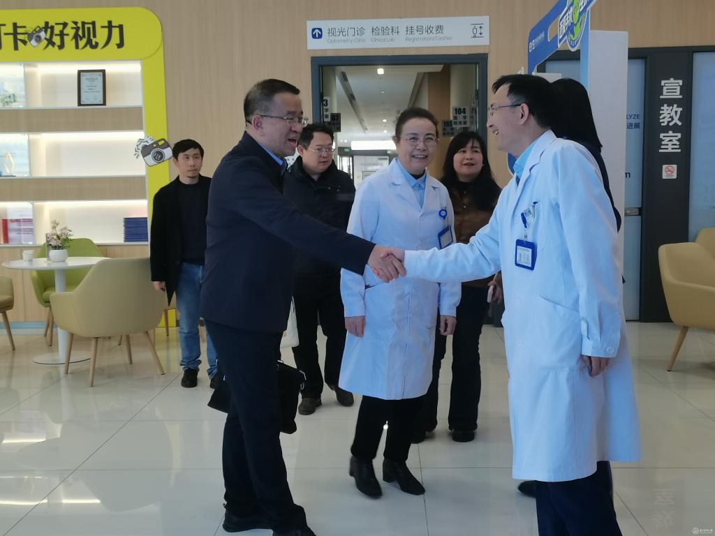 禹文峰一行实地参观了医院视光中心、屈光手术科、门诊诊区及功能检查室,详细了解医院的运营管理模式、设备配置、岗位设置及用人标准。