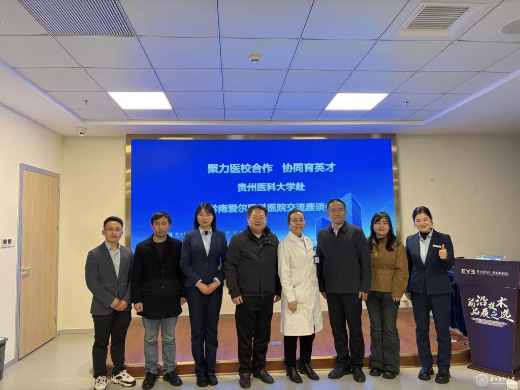 3月23日,副校长禹文峰率队赴黔南爱尔眼科医院开展走访调研。临床医学院党委副书记(正处级)桂晓玲、副院长穆茂、眼科学教研室欧尚坤、辅导员吴云燕及冉启毫参加调研。黔南爱尔眼科医院院长郑岚、人力资源负责人龙绍丽热情接待并陪同调研。