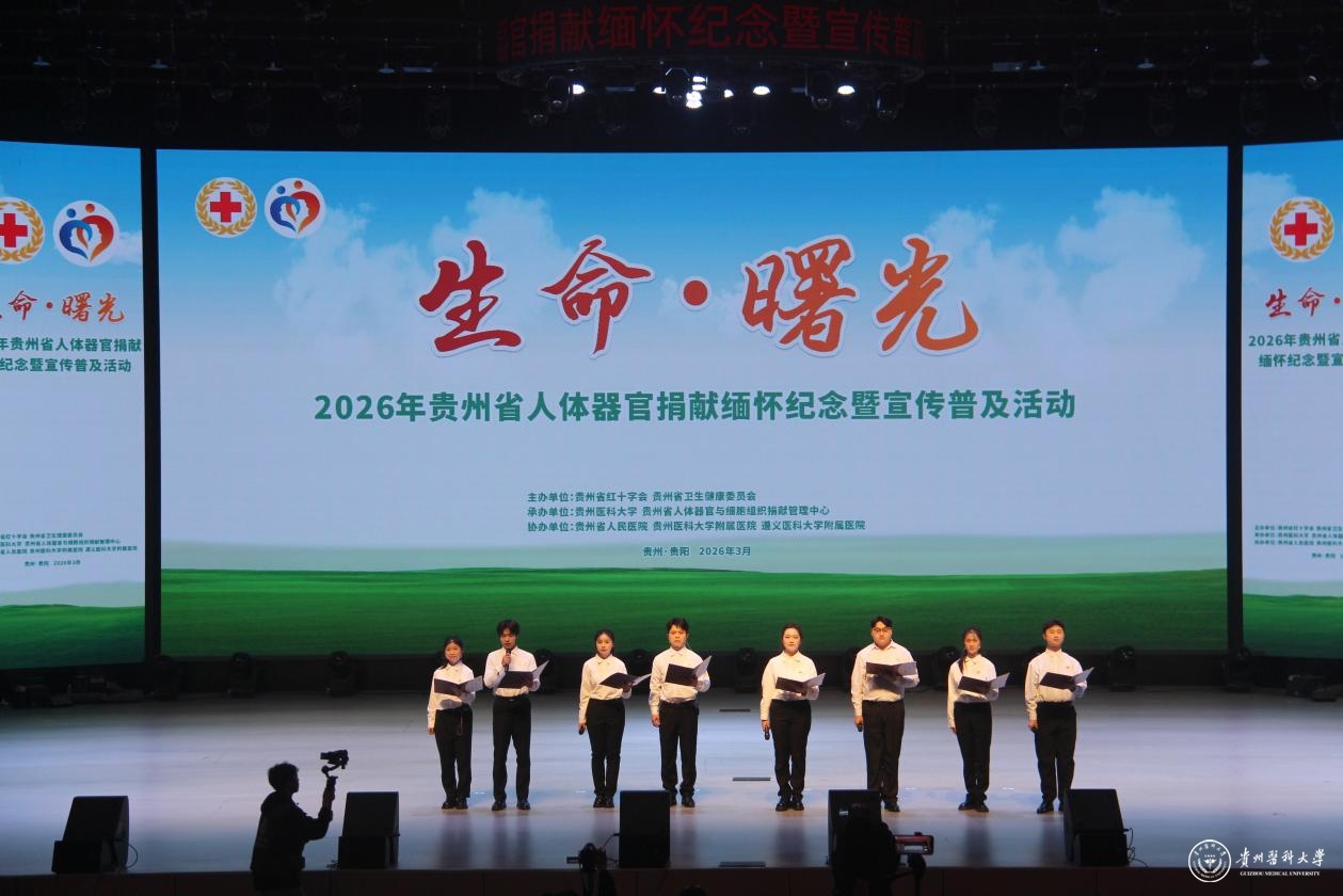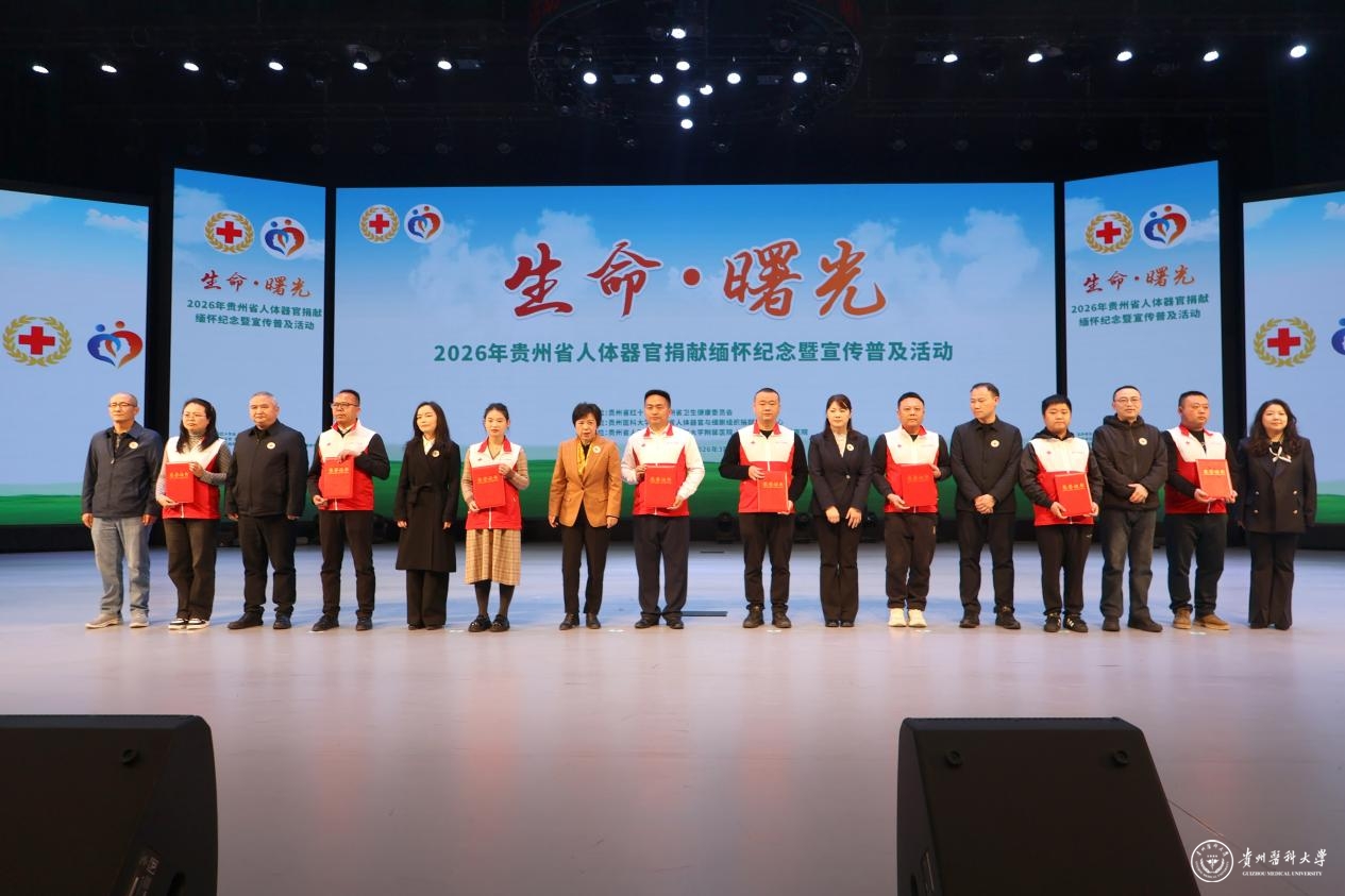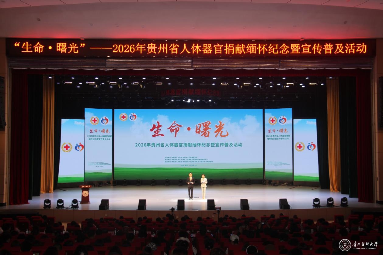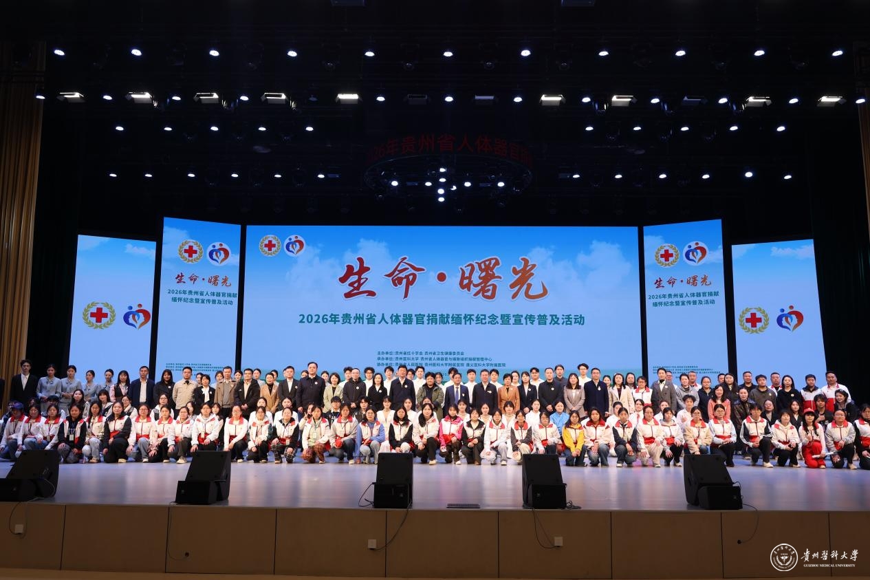 近日,由贵州省红十字会、贵州省卫生健康委员会主办,beat365正版唯一官网必一、贵州省人体器官与细胞组织捐献管理中心承办,贵州省人民医院、beat365正版唯一官网必一附属医院、遵义医科大学附属医院协办的“生命·曙光”——2026年贵州省人体器官捐献缅怀纪念暨宣传普及活动在beat365云漫湖校区大礼堂举行。