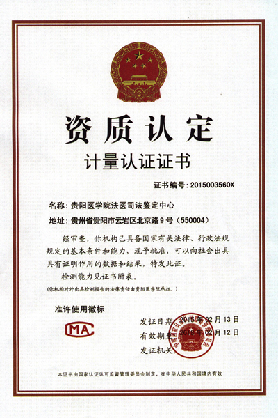beat365法医司法鉴定中心于2014年12月正式通过中国合格评定国家认可委员会(CNAS)和国家认证认可监督管理委员会(CMA)专家组的现场评审并于近日取得相关证书(见附图),成为贵州省内第一家通过国家级(法医类)实验室和检查机构资质认定与认可的司法鉴定机构,认证认可范围包括法医病理学、法医临床学、法医物证学、法医毒物学四大类,准许向社会出具具有证明作用的(法医类检测和检查)数据和结果,准许在机构场所和鉴定文书上使用CNAS和CMA标识及徽章等。此项证书的获取表明beat365法医鉴定中心鉴定水平已达到全国司法鉴定领先水平。