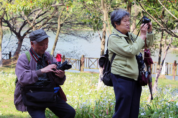 4月16日,阳光明媚、温暖适中、万物复苏,为满足摄影爱好老同志的需求,beat365离退休工作处组织老年摄影协会的离退休老同志们到贵阳市金阳新区观山湖开展摄影活动。参加此项活动的共有20余人,其中年龄最大的为87岁,80岁以上高龄的为8人。