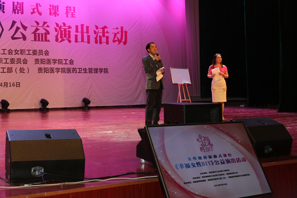 省总工会党组成员、纪检组长胡茜,贵阳医学院党委副书记战勇、省总工会女职工部部长张雨梅等领导参加了此次活动,整个礼堂座无虚席。活动主要针对中青年女性而设计,采用演说及演剧式为主,课程兼具娱乐性、审美性及教育性,让女职工在轻松有趣的氛围中,通过体验式学习,解读现代女性普遍关注的爱情与婚姻、家庭与事业、财富与人生等问题,培养职场女性阳光心态,让女性敞开心扉,感悟幸福真谛。主讲师与演员一道,通过“又讲又演,边讲边演”的方式,跳出“一个人说大家听”的传统模式,增强了课程的趣味性。演讲过程中,大家认真观看,热情与主持人互动,现场气氛相当热烈。演出结束后,大家都意犹未尽,希望今后可以大范围的组织开展类似活动,让更多的女性去认识自己,去实践如何DIY自己的幸福。