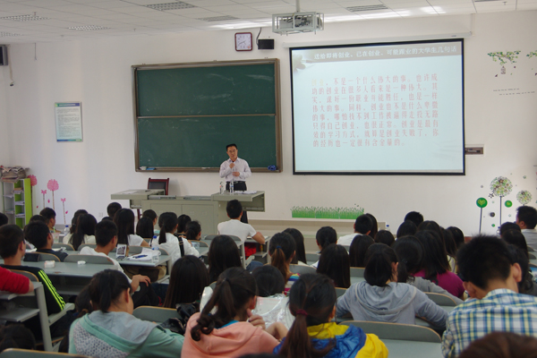 潘军先就贵安新区经济发展作了简介,贵安新区位于贵州省贵阳市和安顺市结合区域,范围涉及贵阳和安顺两市所辖4县(市、区)20个乡镇,规划控制面积1795平方公里。规划定位为中国内陆开放型经济示范区、中国西部重要的经济增长极和生态文明示范区。为西部大开发的五大新区之一,中国第八个国家级新区。2014年1月6日,国务院批复同意设立国家级新区贵州贵安新区。因贵安新区是黔中经济区核心地带,区位优势明显,地势相对平坦,人文生态环境良好,发展潜力巨大,具备加快发展的条件和实力,希望贵州医科大的同学可以投身这片热土。潘军再就大学生为什么要自主创业、创业的内涵、大学生创业的优势弊端、创业的态度、创业三要素、怎么跟业、关于大学生创业的优惠政策等一一为同学答疑解惑。并表示目前正在起草贵安新区《关于发展众创空间促进创业创新的指导意见》,贵安新区准备于近期召开贵安新区创客大会,也希望同学们能借助贵阳发展大数据的东风,在完成好个人学业的同时,依据个人专业及特长积极创业。