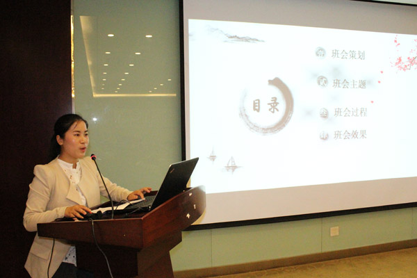 此次活动是“学习国学经典·传承贵医文化”系列活动之一。各班级围绕活动主题,积极开展国学经典诵读、国学经典阅读交流会、国学知识竞赛、历史典故话剧再现、中国书法比赛、建立班级图书角等活动,首先在院系进行评比,并推荐优秀班级参加学校比赛。来自各院系的16位参赛辅导员通过PPT的形式展示了本班级自主开展“学国学经典·创书香班级”主题班会的组织策划、实施过程、取得效果等情况。