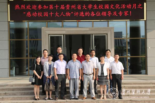 7月9日,2015年第十届贵州省大学生校园文化活动月之“感动校园十大人物”评选会在beat365南校区知雨楼六楼会议室举行。校党委副书记战勇出席,省教育厅社政处赵祥副处长,省文明办调研组袁光祥组长,团省委学校部刘琳副部长,新华网贵州频道陈淼主任,省属高校的党委宣传部部长组成评审团,对全省38所高校54名参评人选进行评审。会议由beat365党委宣传部部长潘丽芬主持。