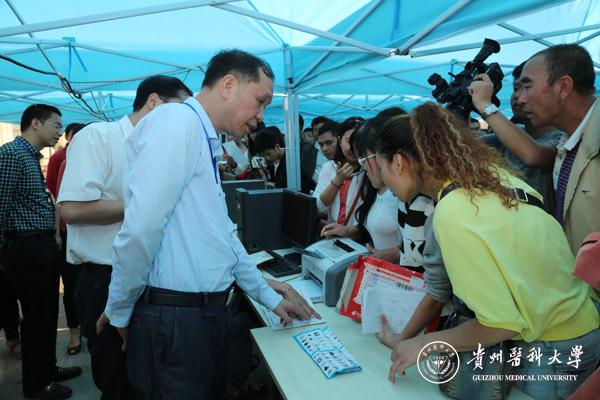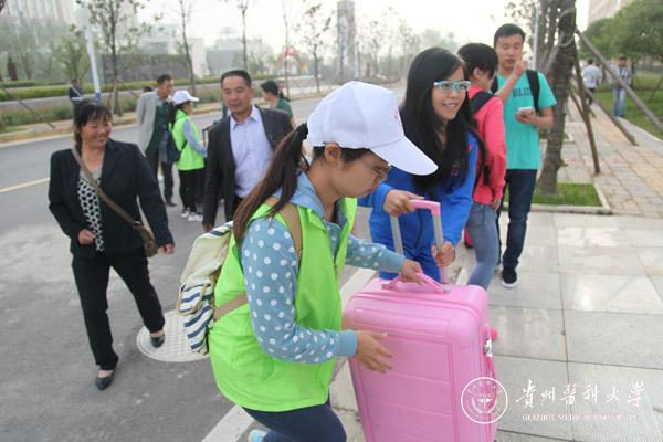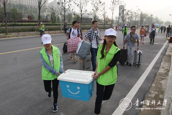仁爱广场上,一顶顶充满温馨色调的帐篷,这是各院系的接待点。各院系独具匠心的迎新方式纷纷传递出温暖的气息,一条条“欢迎新同学”横幅标语,一个个风格各异的迎新宣传板,加上随处可见的迎新工作人员、学生干部、志愿者们以饱满的热情、细致耐心的服务为新同学及家长送上最贴心的关怀。学校工作人员亲切服务,详细解答学生和家长提出的各种问题,青年志愿者、学生干部热情地带领新同学进行信息登记、校园卡和宿舍钥匙发放等入学流程的办理。为给新生和家长提供全面周到的服务,各院系对前来报道的新生从到校接待,检查注册到安顿宿舍,每一个环节都得到了学长学姐们的悉心陪伴,在他们看来,“接过新同学的行李,我们都是贵医人”。