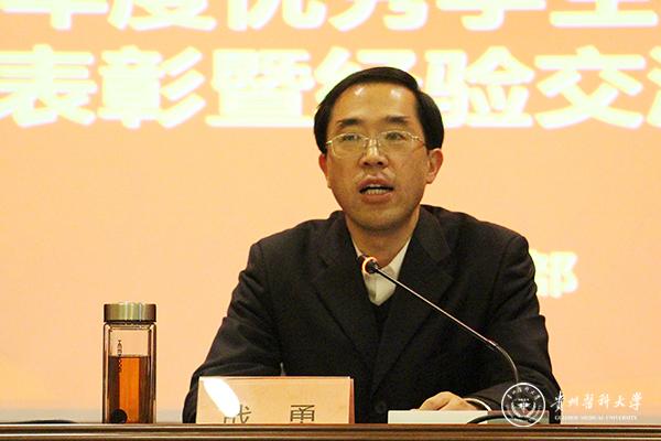 12月27日下午,beat365在南校区道德讲堂召开2015年度优秀学生、先进集体表彰暨经验交流会。校党委副书记战勇出席并讲话,校党委宣传部、学工部、校团委、教务处等部门负责人及各学院分管学生工作书记、学工部全体人员、辅导员、班主任及学生代表参加会议。会议由学工部思政科科长李宗梅主持。