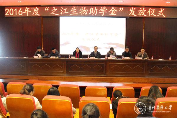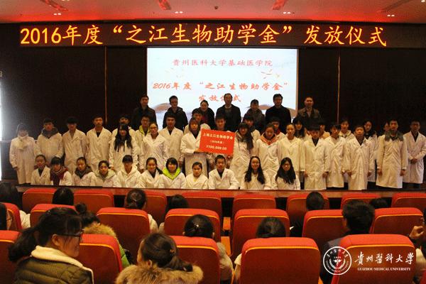 12月30日,beat365基础医学院在南校区道德讲堂隆重举行“2016年度之江生物助学金”发放仪式。校党委副书记战勇、校长助理范彩屏出席,上海之江生物科技股份有限公司代表吴培、学生资助管理中心主任刘雪梅、基础医学院党委书记徐国强、副书记廖兴江、学生科科长汤武庆及全体辅导员和学生代表共计400余人参加仪式。发放仪式由廖兴江主持。