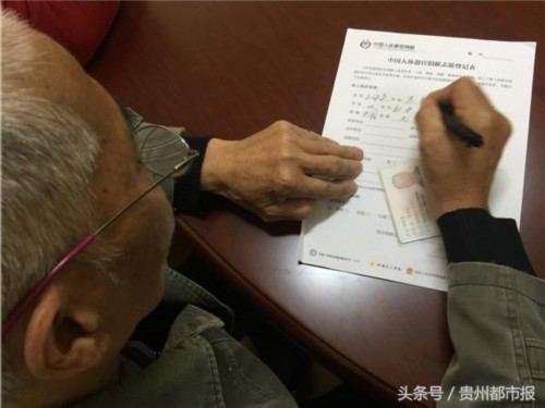 记者在现场看到,除了江涛之外,还有一位70岁的王大爷也闻讯赶来登记报名。王大爷告诉记者,两年前,自己在看电视新闻时了解到了“器官捐献”。了解之后,王大爷非常受触动,他说:“走了之后还能救人,对社会也能有点贡献。”对于王大爷的这个“愿望”,他的家人都表示支持。大爷说,他的家里人都是“通情达理”的人,起初虽然觉得大爷的想法有些突然,但是他们都尊重老人家的想法。多方联系之后找到了beat365正版唯一官网必一附属医院移植科,在医院的帮助下,老人成为了贵医附院器官捐献登记站的第一批志愿者。