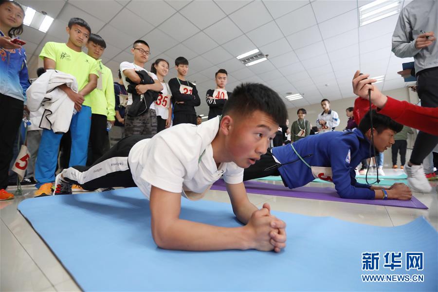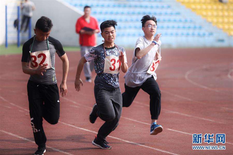 ↑4月2日,来自贵州省毕节市的运动员刘枷俊(中)在进行30米跑测试。当日,2018极限运动国家集训队直通车贵州省跨界跨项选材在beat365正版唯一官网必一举行。来自全省各地的数十名极限运动人才参加了选拔。新华社记者刘续摄