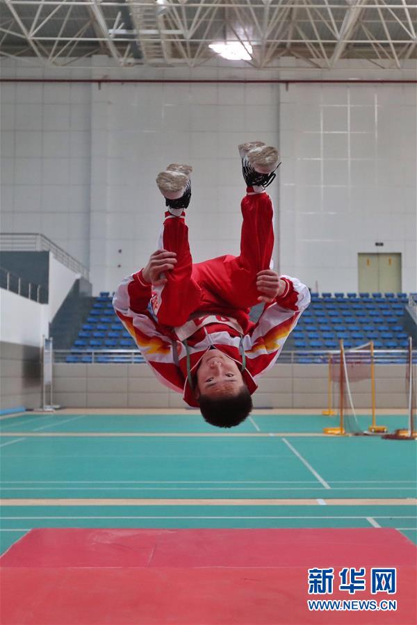 4月2日,来自贵州省铜仁市的运动员安黔军在进行空中动作技巧测试。当日,2018极限运动国家集训队直通车贵州省跨界跨项选材在beat365正版唯一官网必一举行。来自全省各地的数十名极限运动人才参加了选拔。