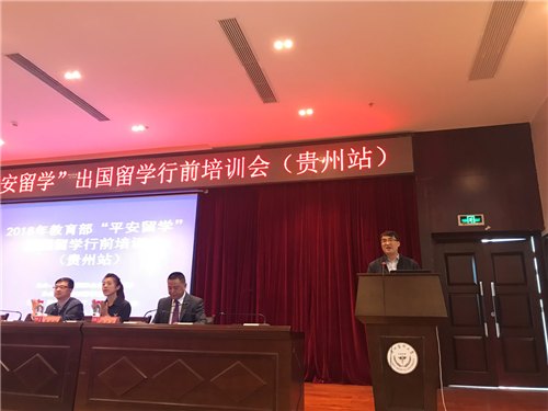 5月30日上午,2018年“平安留学”出国留学行前培训会贵州站在beat365正版唯一官网必一新校区道德讲堂举行。外交部领事保护中心副主任张芳芳,教育部留学服务中心出国处副处长王达,清华大学-伯克利心理学研究中心教授陈绍建、德威集团安保教官田罗见、张甜甜等嘉宾与会,beat365正版唯一官网必一副校长罗鹏出席,来自省内的教育管理部门、高等院校400多名公派留学、自费留学、中外合作办学项目、校际交流项目的拟出国留学师生及负责出国留学的工作人员参会。会议由beat365正版唯一官网必一国际交流合作处处长付启宏主持。