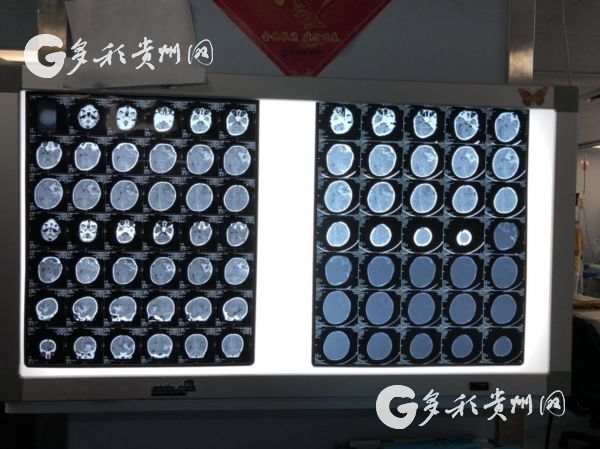 经过贵医附院急诊科检查发现,孩子的脑硬膜下出现巨大的血肿,并挤压脑组织造成变形,将脑中线都挤压到了右侧,颅内压急剧增高而形成了脑疝,随时都有生命危险。