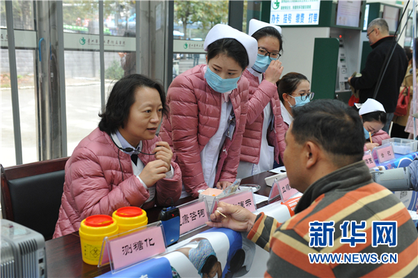 记者在活动现场看到,贵医附院内分泌科的护士们在现场发放糖尿病宣传资料,并免费给市民做测血糖、血压和糖化指标等检查,还有专家医生现场解答市民提问,宣传糖尿病的防治知识。