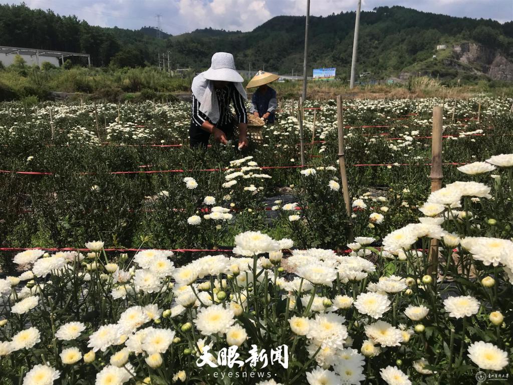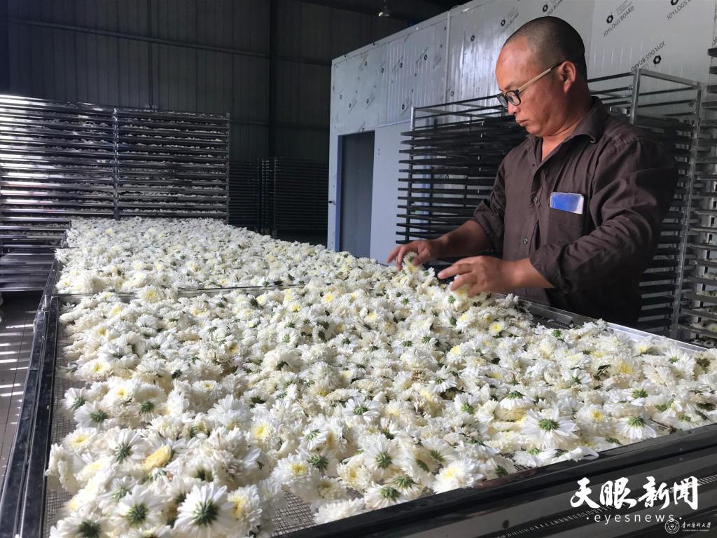岑建国说:“现在是七月菊的采收期,到了金秋时节,就是金丝皇菊的采收期,效益会更好。公司发展好了,也带动当地农户增收致富。”