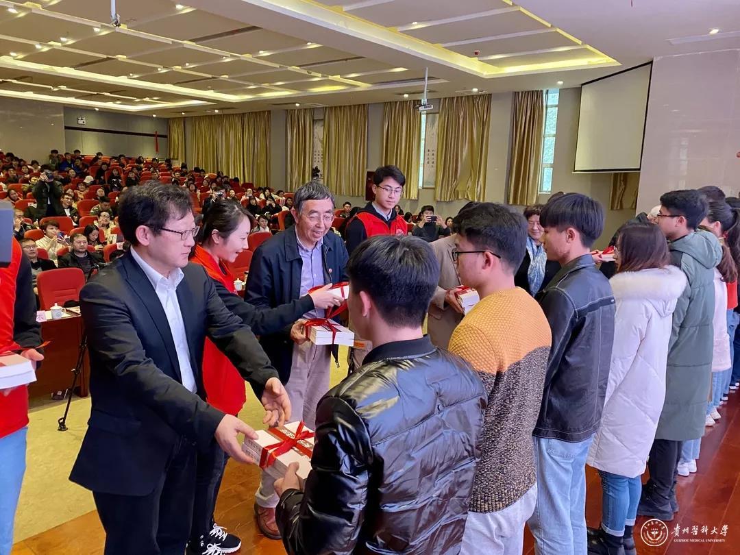 科学家代表们向花溪大学城高校大学生代表赠送《贵州科学家传记丛书》(第一、二卷)。参会领导等向花溪大学城10所高校图书馆赠书赠送《贵州科学家传记丛书》(第一、二卷)。