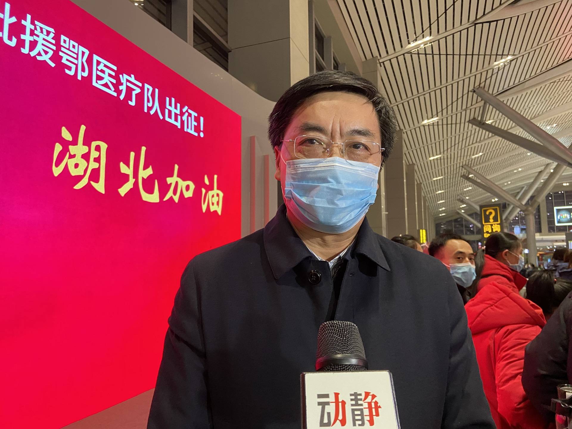 在现场,国务院应对新型冠状病毒感染的肺炎疫情联防联控机制第二十三工作指导组组长邓海华接受了动静记者采访,他首先代表国务院联防联控机制工作指导组向出征湖北、出征鄂州贵州医疗卫生队员致以崇高的敬意,“在疫情防控进入胶着对垒的阶段,他们逆向而行,这是一个光荣的行动,这是一个神圣的使命”,他说:“非常感谢贵州省委、省政府在做好本身疫情防控工作的同时,按照习近平总书记全国一盘棋的要求下,支持湖北,支持鄂州,打赢湖北保卫战,打赢武汉保卫战,作出贵州人民的贡献。”