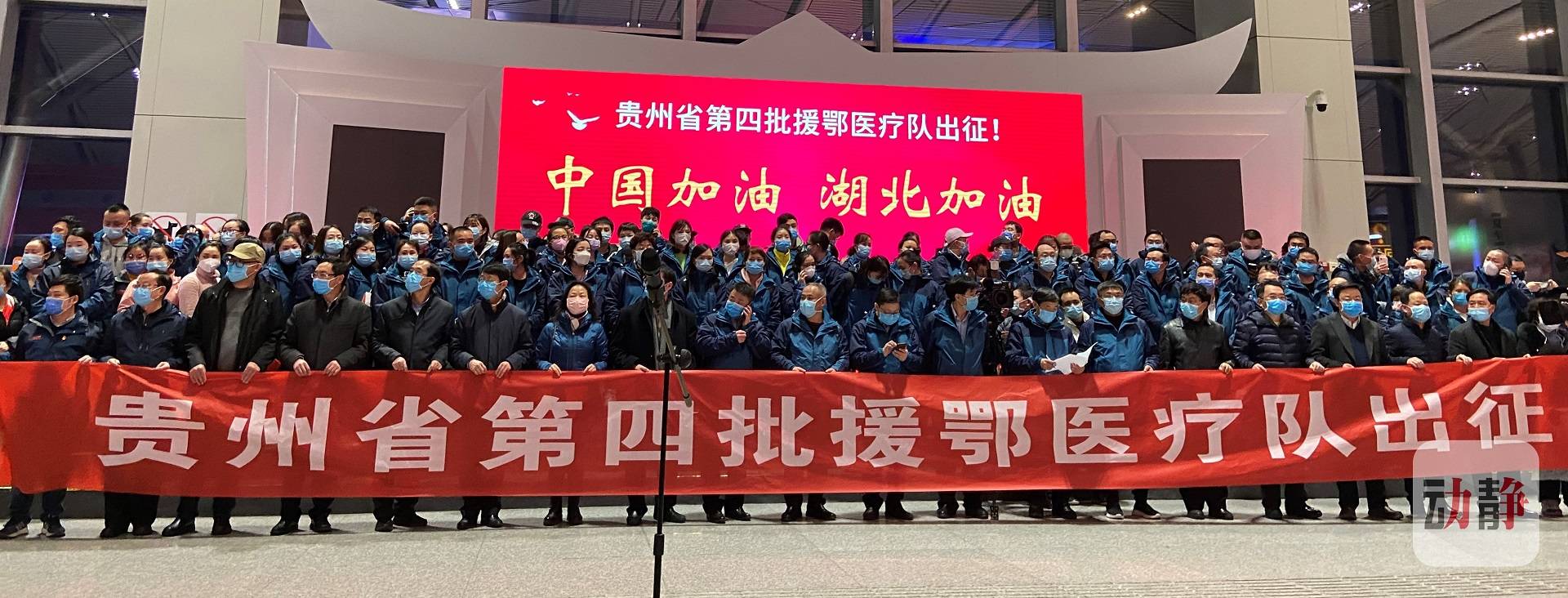 2月11日晚上8点,贵州省第四批支援湖北医疗队出征仪式在贵阳龙洞堡机场出发大厅举行,此次出发的医疗队由337名医护人员组成,他们将驰援湖北鄂州。