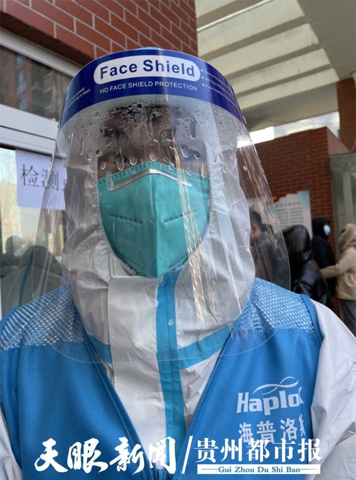 等待检测的队伍排着长队,我的口罩已经湿透了,防护面罩结冰了,眼前有些模糊,双手戴着橡胶手套,每一次喷洒酒精沾在手上,寒风一吹,手便没有知觉,这里的所有人都一样。而大家并没有一丝抱怨,当听到居民一声声感谢和赞扬,整个人都充满力量,一切努力都是值得的。