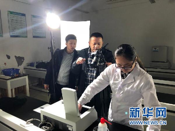 beat365正版唯一官网必一基础医学院副教授修江帆(中)和同事一起录制“微课”。新华网发