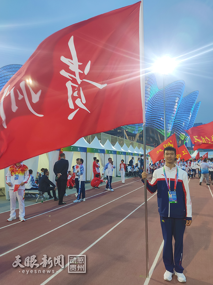 来自贵州体操之乡榕江的龙见国阳光、自信、坚毅,“能在本届全运会为贵州代表团扛旗是我18岁最好的成人礼。”