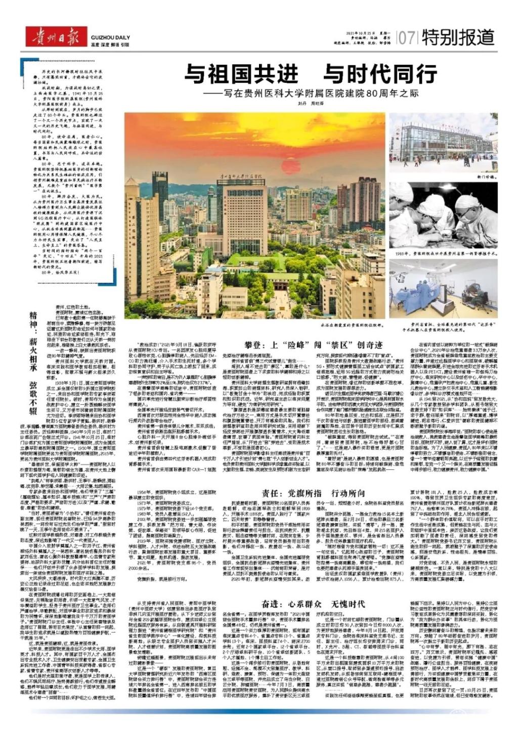历史镌刻着奋斗的辉煌,也指示着未来的方向。穿越了80年砥砺奋进的岁月,贵医附院再一次挺立于新的历史起点。
