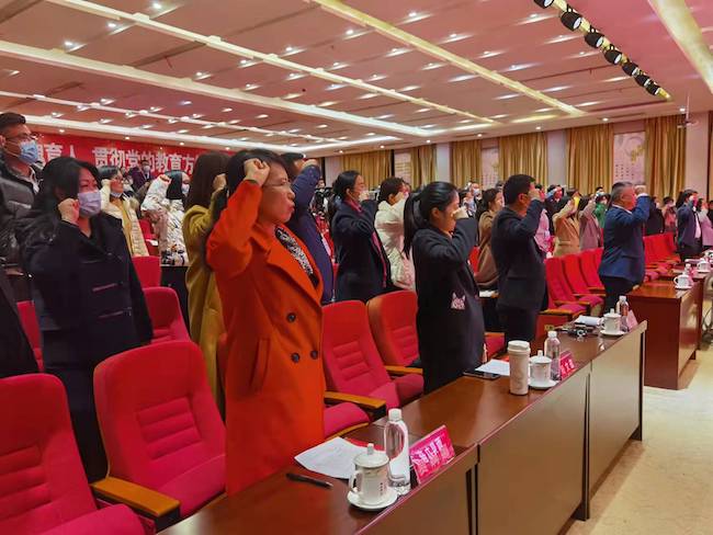 全体辅导员在杨未的领誓下重温了《辅导员誓词》。