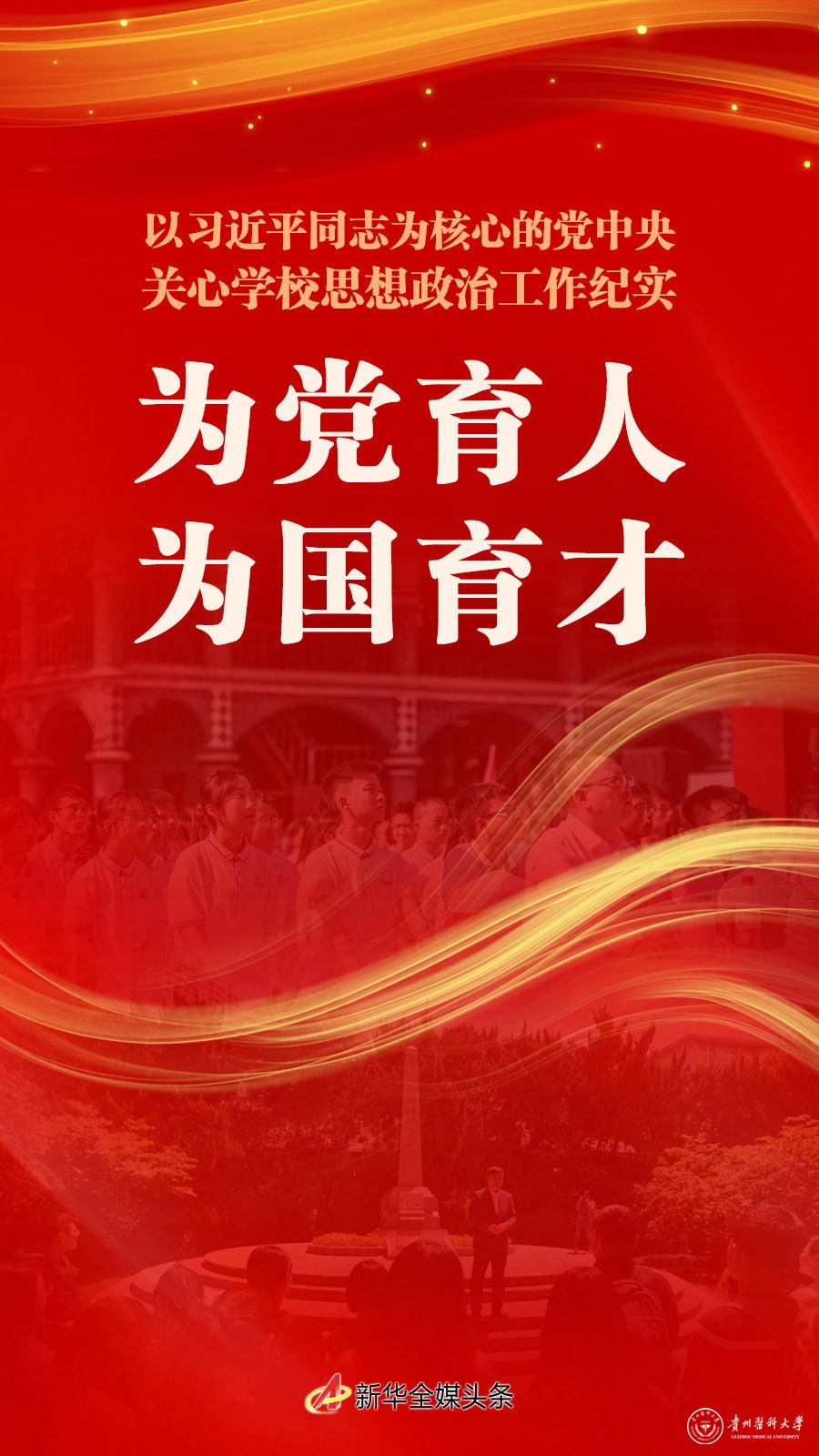 “要坚持不懈传播马克思主义科学理论,抓好马克思主义理论教育,为学生一生成长奠定科学的思想基础。要坚持不懈培育和弘扬社会主义核心价值观,引导广大师生做社会主义核心价值观的坚定信仰者、积极传播者、模范践行者。”